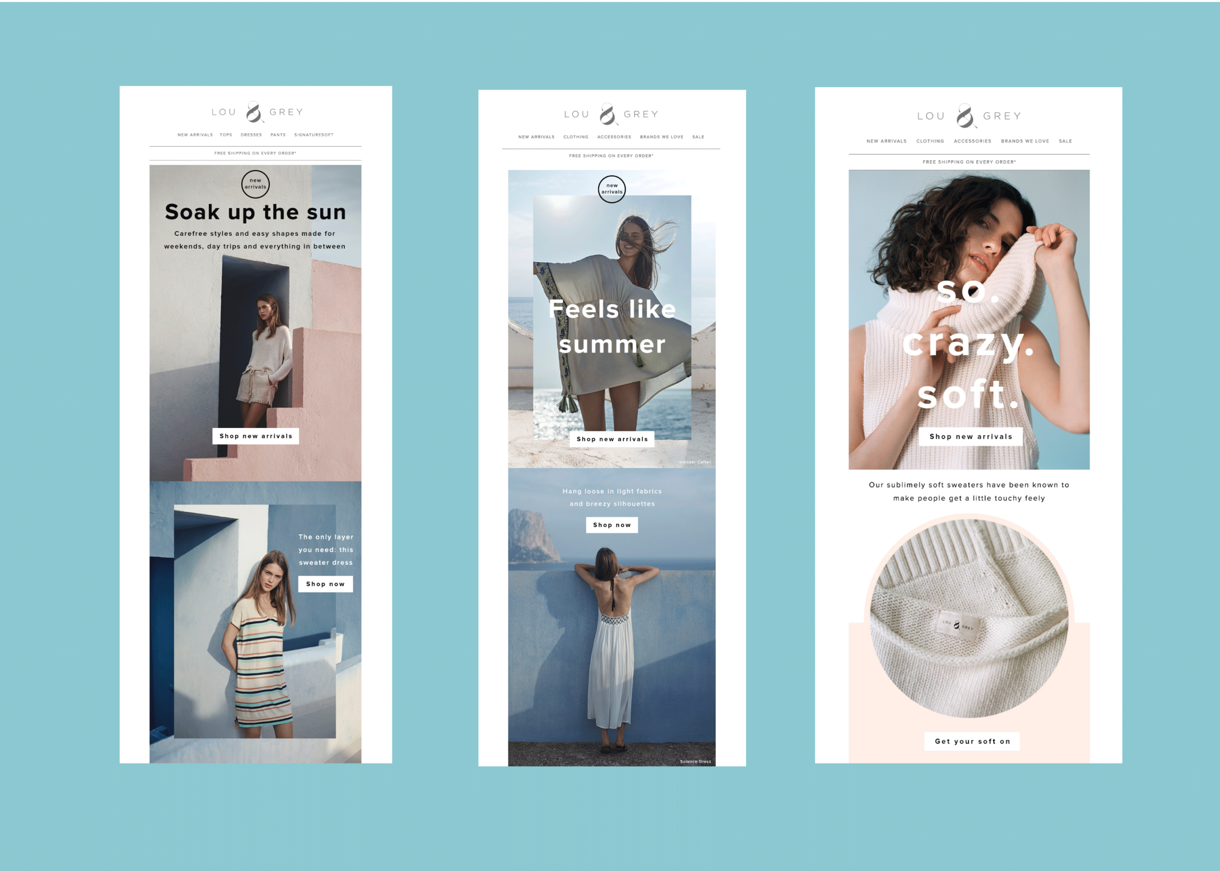 Role: During my tenure at Lou & Grey, I contributed to the brand’s communication strategy by creating engaging and visually appealing emails. These designs captured the essence of the brand’s ethos and created moments of elevated storytelling. Each design was a challenge in storytelling, layout, and photography selection.