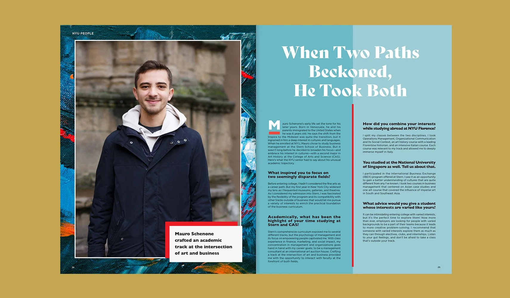 About: Our team at NYU collaborates with the Office of Enrollment Management to reach prospective students through a quarterly print magazine, NYU Q, and the content website, Meet NYU.